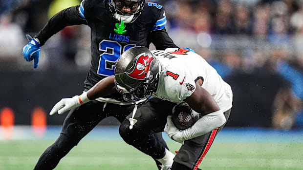 Running back Rachaad White took the majority of the team's snaps in the running back room against the Lions, playing on 90% of the offense's snaps. He also had 10 carries on the day, and one of those carries is going to put a dent in his wallet — the NFL fined White $46,371 for leading with his head during a carry during the game last Monday, per NFL reporter Tom Pelissero.