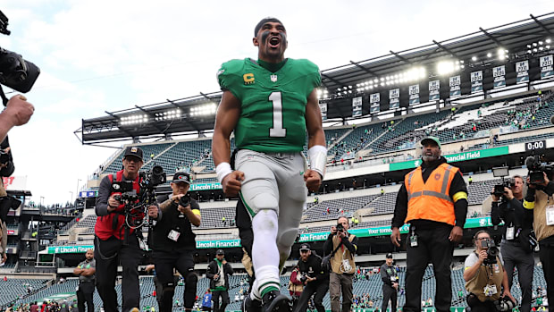 Simply put, Hurts is playing at a level that is elevating this Eagles team as a whole right now. He's playing at a special level right now. Last week, he became just the third Eagles quarterback in franchise history to have a perfect passer rating in a game. He also recently became the first quarterback in NFL history to log 60 or more rushing touchdowns in his first six seasons. He just can't be stopped right now.